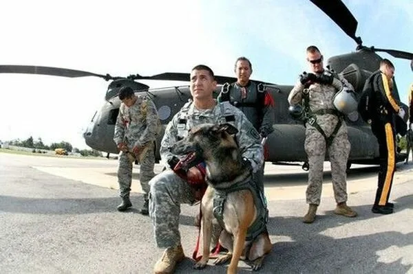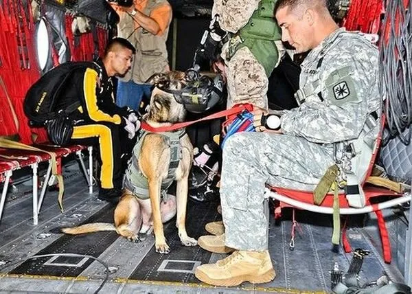 Wonderful day for parachute jumping. We have aircraft, parachutists, a nice day without wind all the conditions are ideal. There is also a dog. Dog? What does the dog do here? If you came to see his owner on the fly, or simply walking in? No! He parachute jump? Yes, you read that right. He is the star of this event. This is no ordinary dog, it was a military dog! Trained just for this sort of thing. And these guys in the green is the U.S. military, one of the best in the world. Courage and loyalty of this great dog can be freely said beyond the courage of us people. Many people.